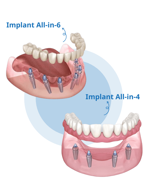 Hiện nay, có 2 phương án cấy ghép Implant toàn hàm phổ biến là All-On-4 và All-On-6.